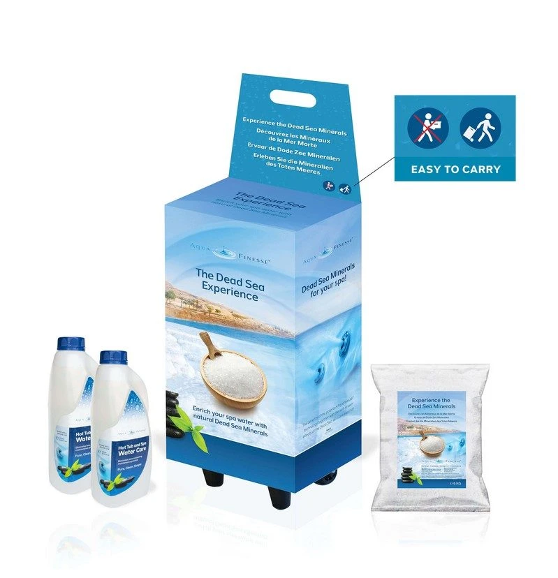 AquaFinesse The Dead Sea Experience is een waterbehandeling set van Aquafinesse voor in uw Spa. Deze bestaat onder andere uit zout die rechtstreeks uit de dode zee komt.