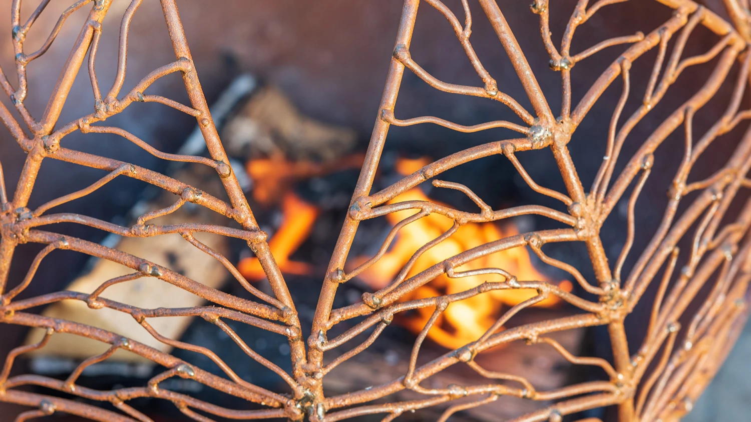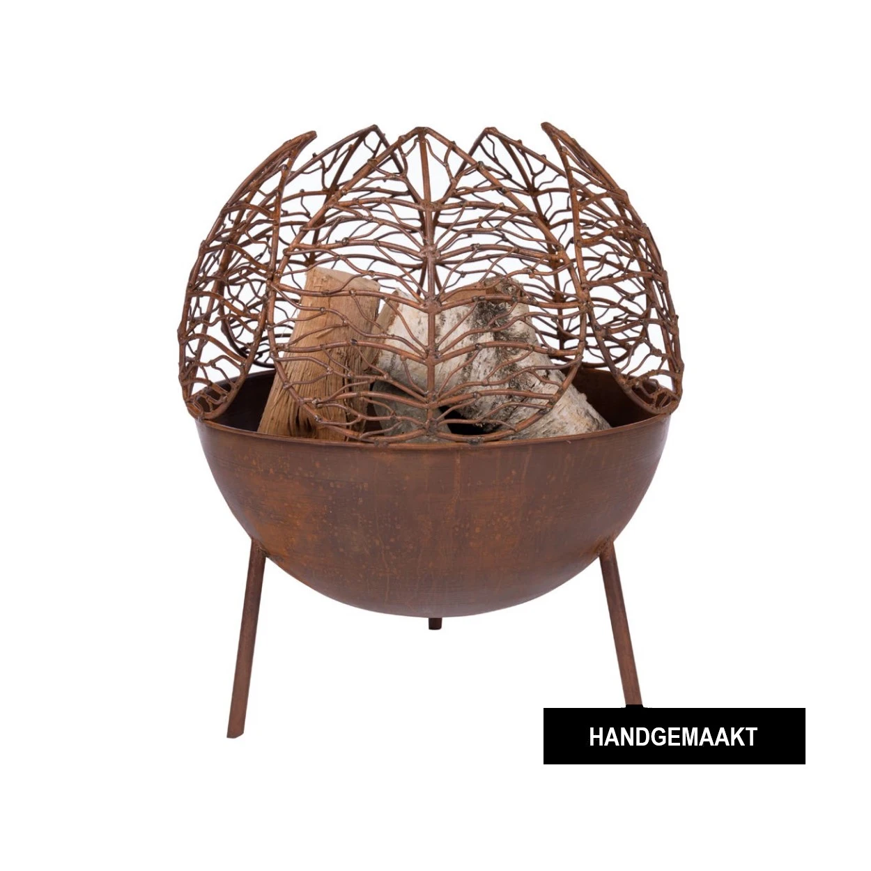 - vuurmand met origineel bladvormige metalen laswerk