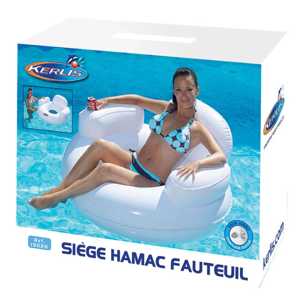Witte drijvende zwembad zetel gemaakt van dik versterkt PVC 0,35mm dik. inclusief hoofdsteun, armsteunen en een drankhouder.